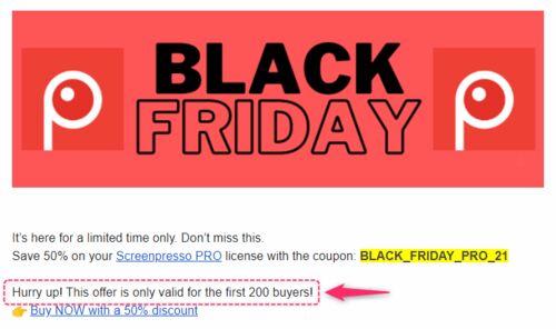 ブラックフライデーですね。 例年どおりScreenpressoの半額クーポンが発行されました。PRO版を買おうかお悩みの方は、今がチャンスです。